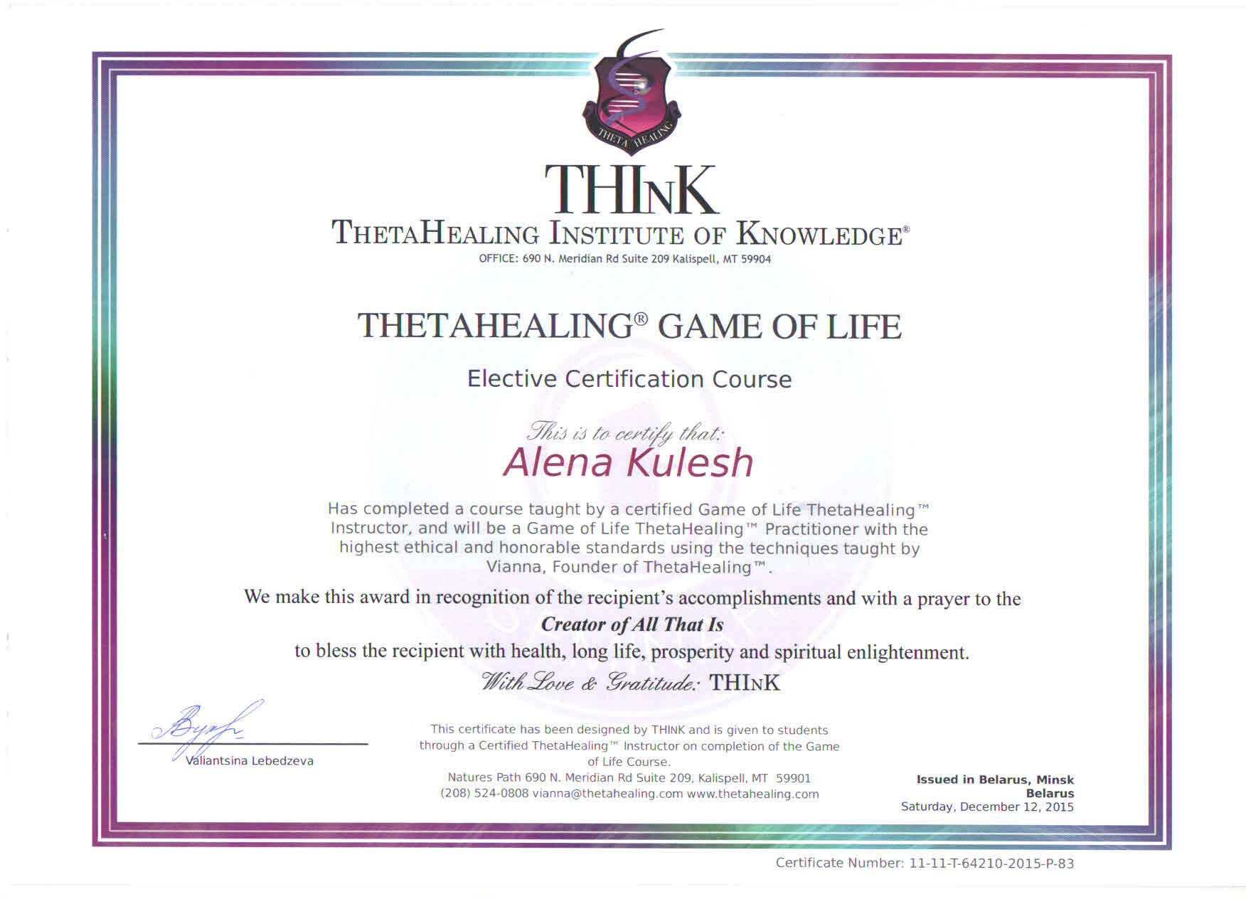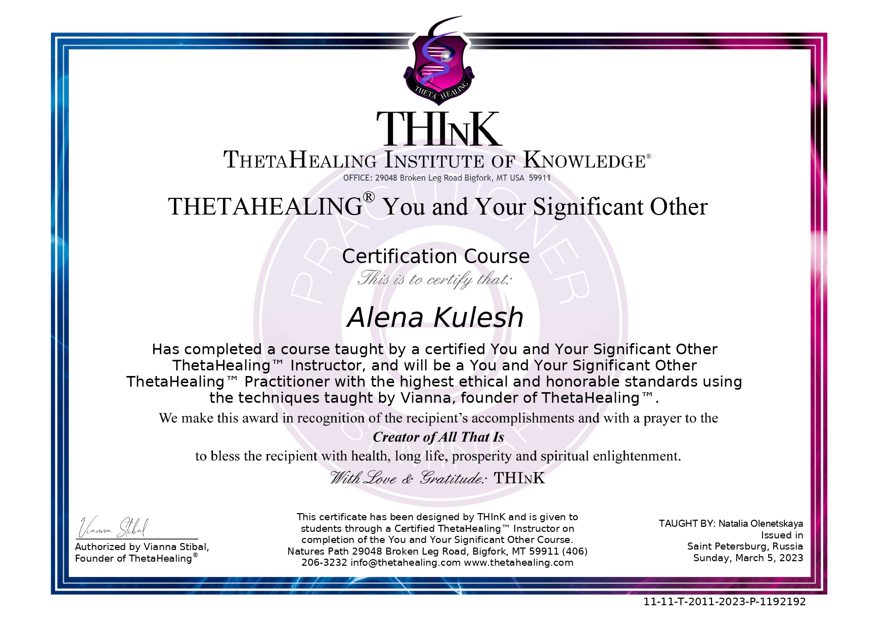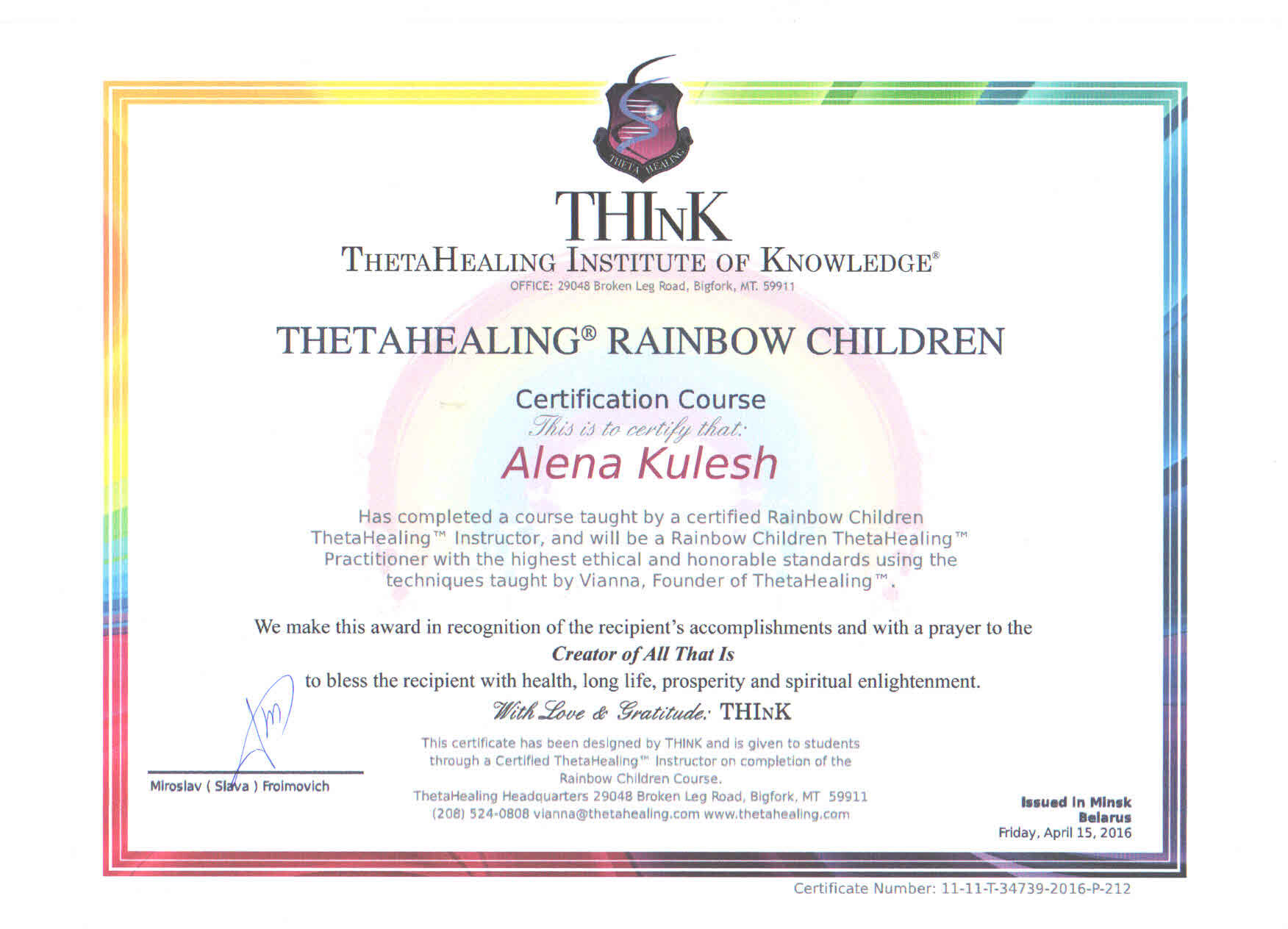 Тетахилинг (курсы Базовый, Продвинутый, Глубинные Раскопки, Игра Жизни, Манифестация Изобилия, ТетаСтройность, Дети Радуги, Друг Души, Я и Земля, Мировые Отношения, Я и Творец, Семейные узы, Интуитивная Анатомия, ДНК-3, Ты и твой замечательный партнер, Ты и твой внутренний круг);