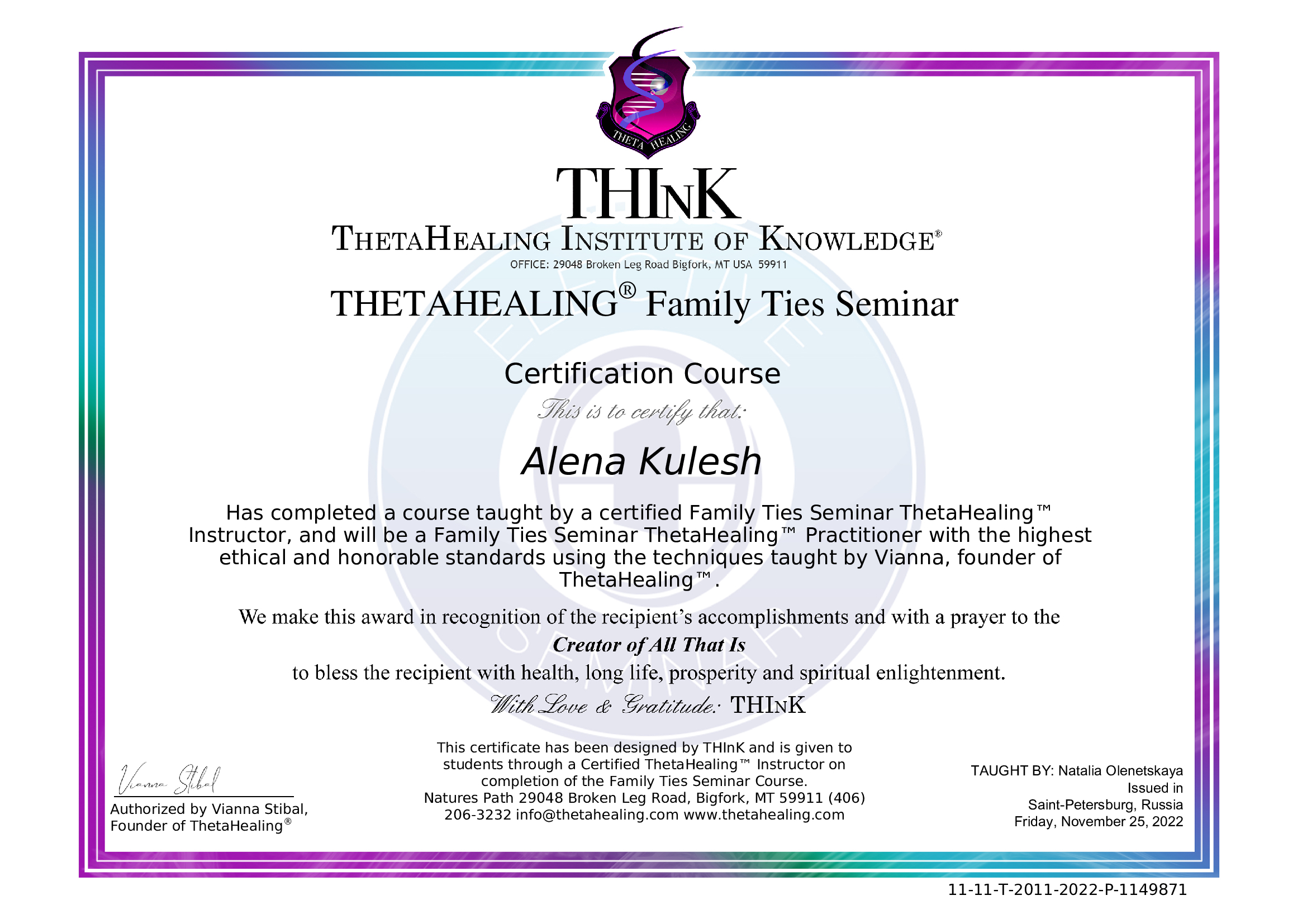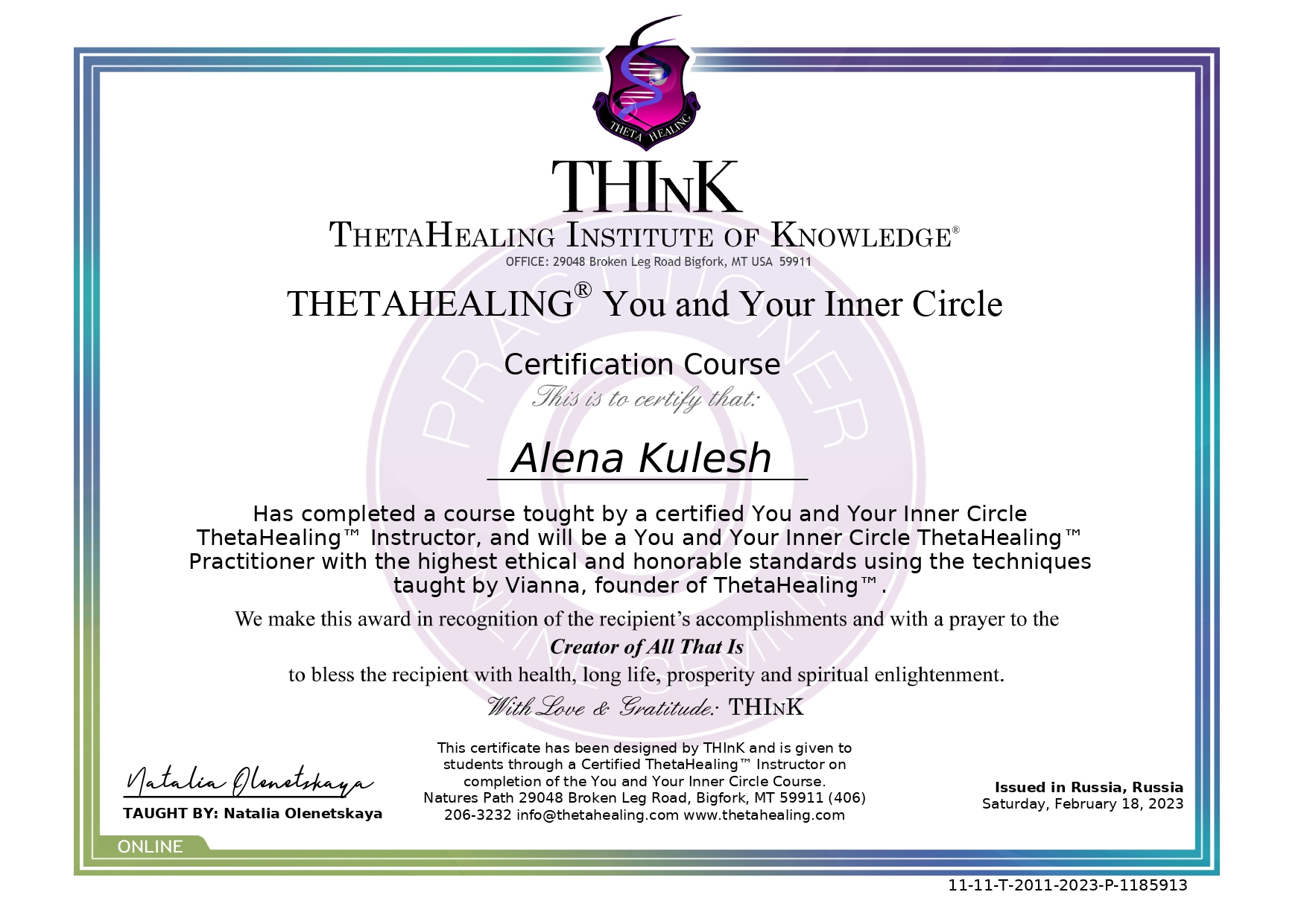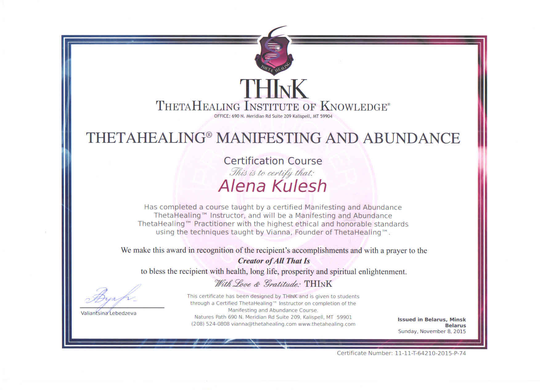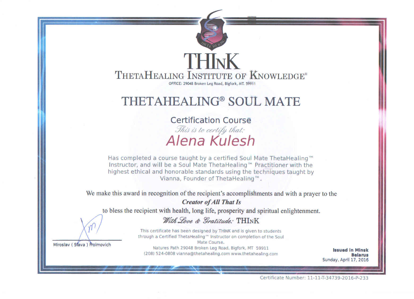 Тетахилинг (курсы Базовый, Продвинутый, Глубинные Раскопки, Игра Жизни, Манифестация Изобилия, ТетаСтройность, Дети Радуги, Друг Души, Я и Земля, Мировые Отношения, Я и Творец, Семейные узы, Интуитивная Анатомия, ДНК-3, Ты и твой замечательный партнер, Ты и твой внутренний круг);